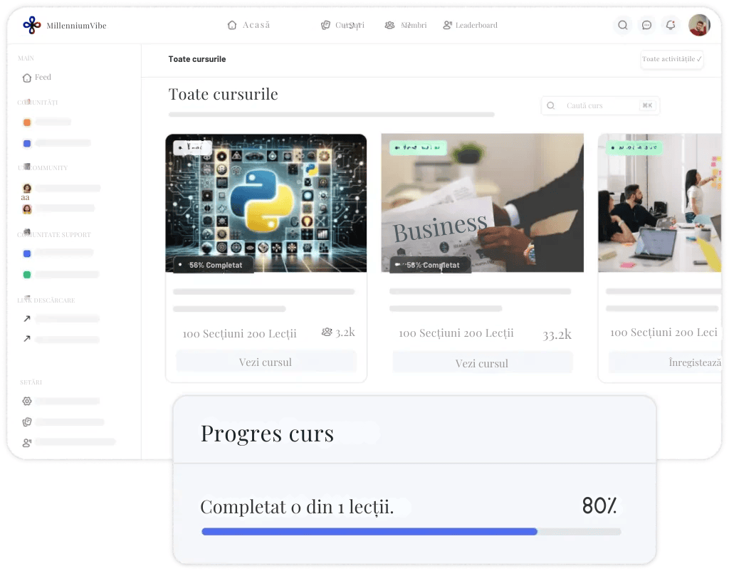 Instrumente LMS puternice pentru a crea cursuri online, plus o comunitate activă în jurul cursurilor tale.